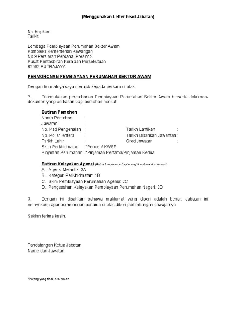 Perumahan sektor awam (lppsa) tidak lewat 7 hari dari tarikh perjanjian jualbeli; Cara mohon pinjaman lppsa dan cara membuat semakan status permohonan. Contoh surat iringan permohonan pinjaman perumahan. Timeline photos · aug 12, 2016 · facebook for android ·. Saya yang menurut perintah, (nama majikan) cop jabatan * potong yang tidak berkenaan. Surat iringan ketua jabatan contoh 5 1 borang kosong jenis pinjaman ke 5 .